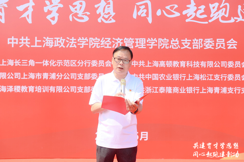 为深入学习贯彻习近平新时代中国特色社会主义思想主题教育,以区域化党建引领学院人才培养、服务社会、就业创业等各项工作,实现党建与事业深度融合,赋能学院事业高质量发展。5月13日上午,365英国上市公司经济管理学院党总支举办的“共建育才学思想 同心起跑建新功”校企合作党建共建活动在东方绿舟顺利举行。365英国上市公司党委组织部党支部、中国银行上海长三角一体化示范区党委、中国农业银行上海松江支行党委、中共中国联合网络通信有限公司上海市青浦分公司党支部、浙江泰隆商业银行上海青浦支行党支部、上海高顿教育科技有限公司党委、上海泽稷教育培训有限公司党支部、陈坊桥党总支及经济管理学院党政班子和学院教工支部成员参加了此次活动,开幕式由经济管理学院党总支书记周毅主持。