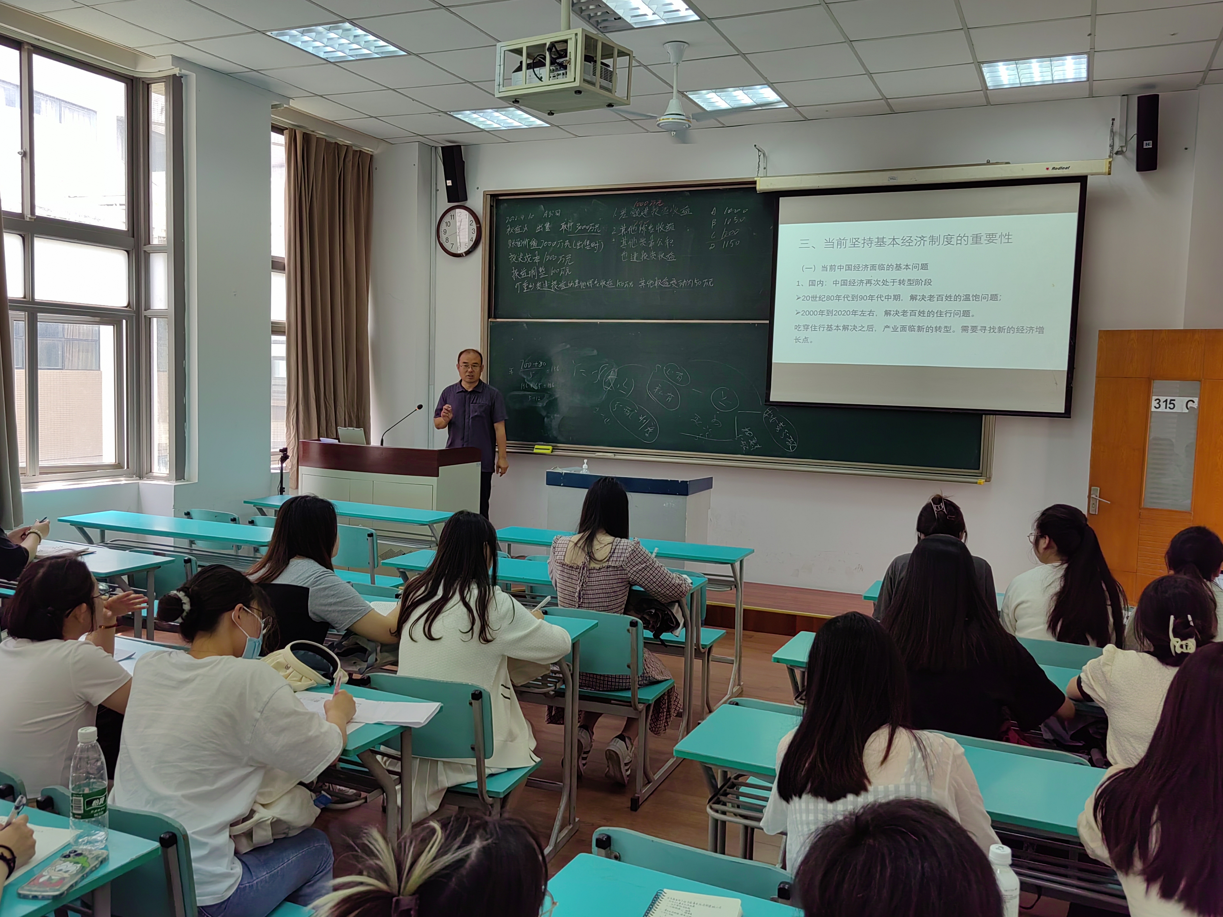 5月16日下午,经济管理学院副院长刘宪教授在主教315C为上政第27学生党支部讲授题为《在当前条件下对中国基本经济制度的认识》的专题党课。27支部全体党员参加。