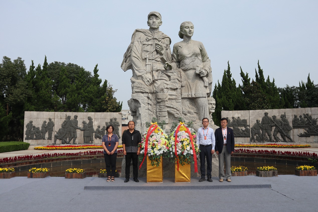 全体师生在瞻仰广场纪念碑前肃穆行礼,经济管理学院党委书记周毅,党委副书记、院长刘志强,副院长刘宪,工会主席黄慧作为代表向革命先烈敬献花篮,教工党支部书记马忠新、程利敏上前整理花篮缎带,向先烈致敬。