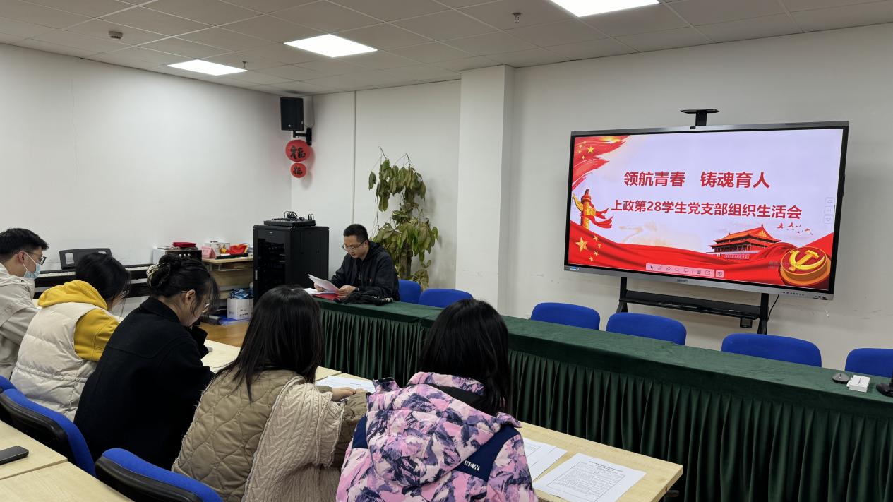 为了深入落实习近平新时代中国特色社会主义思想,提升支部党建工作水平,持续推进支部组织生活规范化、制度化,创新组织生活开展方式,进一步增强支部的吸引力、感染力,上政第28学生党支部于3月20日开展“领航青春,铸魂育人”组织生活会。此次会议的目的是为了加强党员的思想政治教育,提高党员的政治素质,以及推动支部党建工作的全面发展。