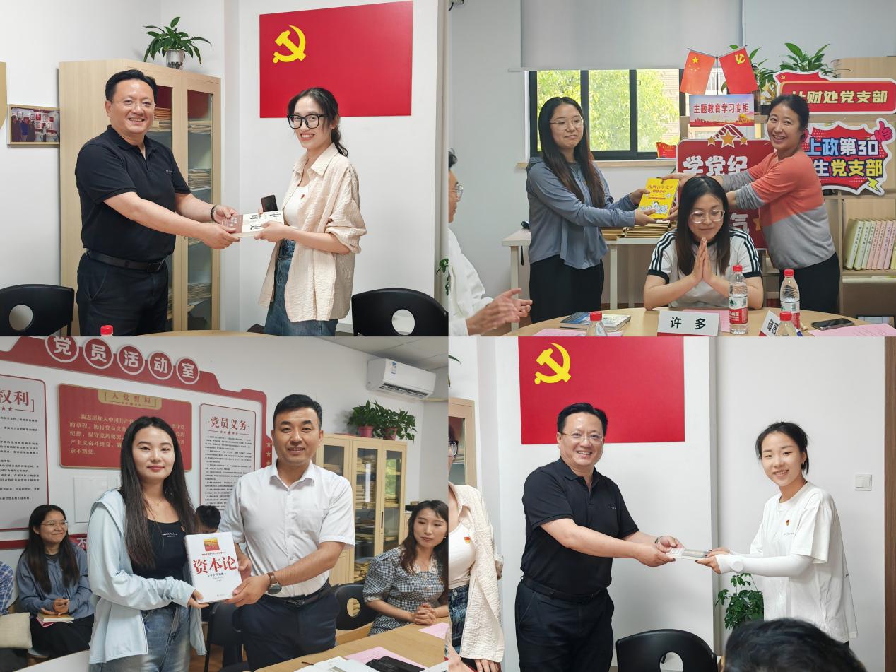 5月23日,上政第30学生党支部与计财处党支部在新经管楼201会议室联合开展主题为“学党纪、树新风、扬正气”的党纪联学活动,推动党纪学习教育走实走深。计财处党支部书记、计财处处长叶玮,计财处副处长陶洁,经管学院党委副书记丁明强以及两支部全体党员、部分入党积极分子参加活动。活动由上政第30学生党支部书记孔令媛主持。