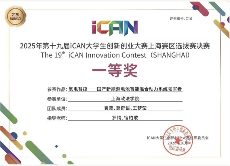 (经济管理学院袁奕、莫奇语、王梦莹三位同学开展的“氢电智控--国产新能源电池智能混合动力系统领军者”项目荣获一等奖)