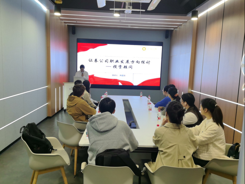 在座谈环节,上海证券的熊震东老师作了主题为《证券公司职业发展方向探讨》的报告。上政第27学生党支部书记余佳瑞作《深学党的二十届四中全会精神 以实干担当托举“十五五”蓝图》专题党课。随后,同学们围绕金融市场热点、职业规划、考研实习等话题与上海证券的老师展开热烈交流,进一步明确了金融工作者的职责使命。