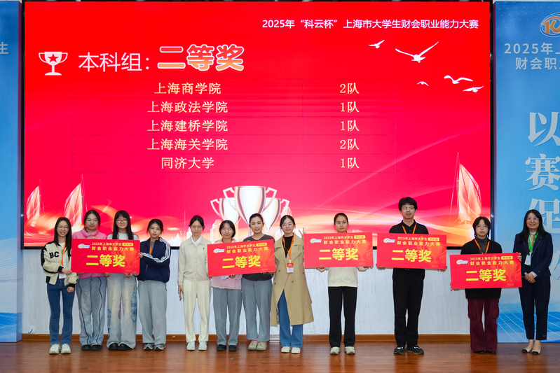 11月9日,由上海市教育委员会主办、上海立信会计金融学院承办的2025年“科云杯”上海市大学生财会职业能力大赛成功举办。比赛共有来自同济大学、上海大学、华东理工大学等18所上海本科院校的35支参赛队伍。我院选送的两支赛队在比赛中团结协作、沉着应对,展现出扎实的专业素养和职业能力,表现出色。由何佳妮、黄紫妍、邱钰淇、何奕臻组成的上政2队(指导老师:丁明强、黄慧)荣获上海市一等奖;由杨紫涵、白佳妮、李岫瑾、李昱儒组成的上政1队(指导老师:鲍长生、谢玮洁)荣获上海市二等奖。