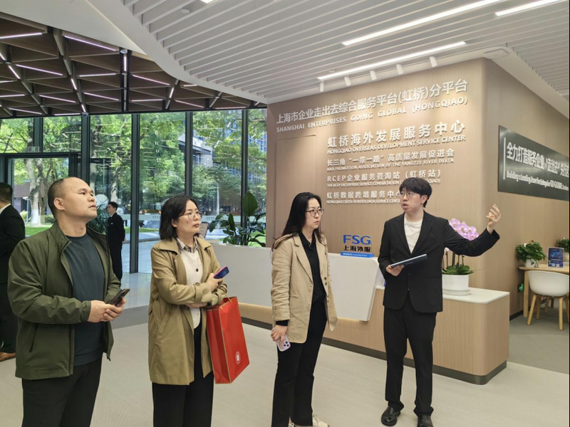 调研团先后参观了虹桥海外发展服务中心、虹桥国际人才服务中心、虹桥海外贸易中心,深入了解虹桥国际中央商务区的发展历程与功能定位。虹桥国际中央商务区作为服务国家重大战略的重要平台,积极为中国企业“走出去”搭建畅通渠道,提供涵盖跨境财税支持、海外商务考察与资源对接、合规护航、跨境数据服务、本地供应链布局、出海战略规划与智库支持、海外基地选址与政策谈判、以及海外品牌推广与数字化营销等全方位专业服务。