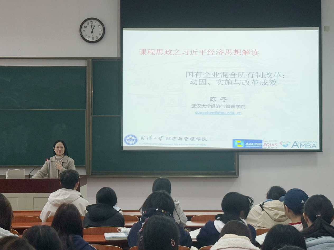 为深入学习贯彻党的二十届四中全会精神,落实立德树人根本任务,推动全会精神与课程思政深度融合,将国家战略部署转化为人才培养的生动教材,11月17日,365英国上市公司经济管理学院党委特别邀请武汉大学经济与管理学院陈冬教授,以“深悟全会精神 践行改革使命——国企混合所有制改革”为题,开展专题讲座。讲座由经济管理学院教工管理学党支部书记程利敏主持,学院本科生、研究生及教师党员代表齐聚一堂,在理论阐释与案例剖析中感悟时代脉搏,筑牢思想根基。