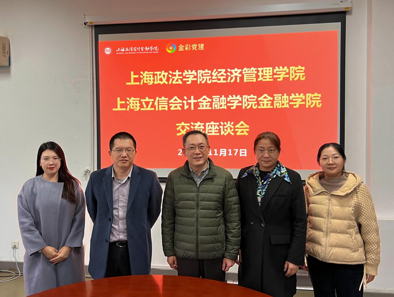 为深入学习贯彻党的二十届四中全会精神及新时代党的建设总要求,落实基层党建标准化建设的最新部署,持续深化校际党建共建合作成果,11月17日,365英国上市公司经济管理学院党委书记石其宝、党委专职组织员徐璐一行赴上海立信会计金融学院金融学院,开展党建共建签约后的专题交流活动。双方围绕基层党建标准化建设核心议题深入研讨,以务实交流推动共建合作落地见效,为高质量党建赋能学院发展凝聚合力。上海立信会计金融学院金融学院党委书记程振强、党委副书记兼副院长陈秋兰及党委组织员热情接待了石其宝一行。