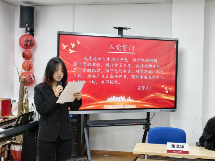 为深入学习贯彻习近平新时代中国特色社会主义思想,全面落实党的二十大和二十届四中全会精神,紧紧围绕新时代党的建设总要求,扎实推进以高质量党建引领思政育人工作,教育引导新发展党员牢记入党初心、锤炼坚强党性、筑牢信仰根基、践行使命担当。2025年12月25日中午,经济管理学院2025年下半年新发展党员入党宣誓仪式在E9-203会议室举行。经济管理学院学工负责人王颖、教工管理学党支部书记程利敏、党委组织员徐璐以及各本科生党支部书记出席了本次活动,2025年下半年新发展党员参加本次活动。仪式由上政第28学生党支部书记荣泽华主持。