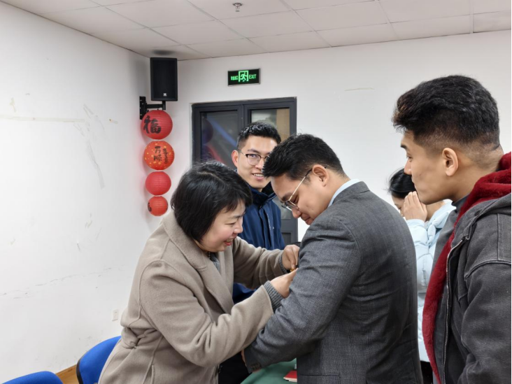 随后,党委组织员徐璐宣读新发展党员名单。各党支部书记逐一为预备党员郑重佩戴党员徽章,发放《中国共产党章程》。这枚小小的徽章象征着新党员从此肩负起党员的使命,成为为人民服务的先锋战士。