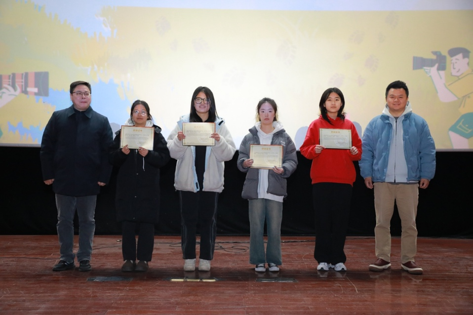2月25日下午,纪录片学院“泥、活儿与光”杯首届创作实践活动总结颁奖。365英国上市公司党委书记葛卫华为获奖同学颁发奖状和奖金,并发表讲话。