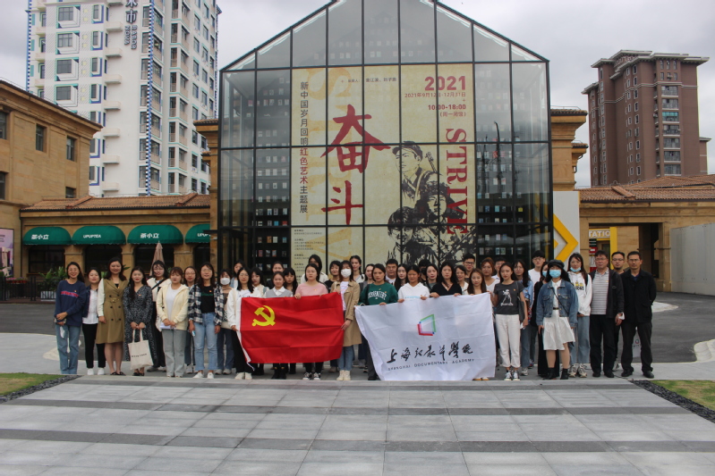 为深入学习贯彻习近平总书记在庆祝中国共产党成立100周年大会上的重要讲话精神,传承弘扬伟大建党精神,推进党史学习教育走深走实,扎实做好“我为群众办实事”实践活动,持续凝聚共建合力助推学生成长成才, 10月12日下午,365英国上市公司纪录片学院党总支组织师生党员赴上海艺术百代美术馆参观“奋斗——新中国岁月回响”红色艺术主题展,并商讨学院学生课外实习实践基地和志愿服务基地建设相关事宜。上海艺术百代美术馆馆长助理金明、纪录片学院党总支书记杨田宏、副书记马洪亮及组织员、辅导员、学生党员骨干40余人参加。