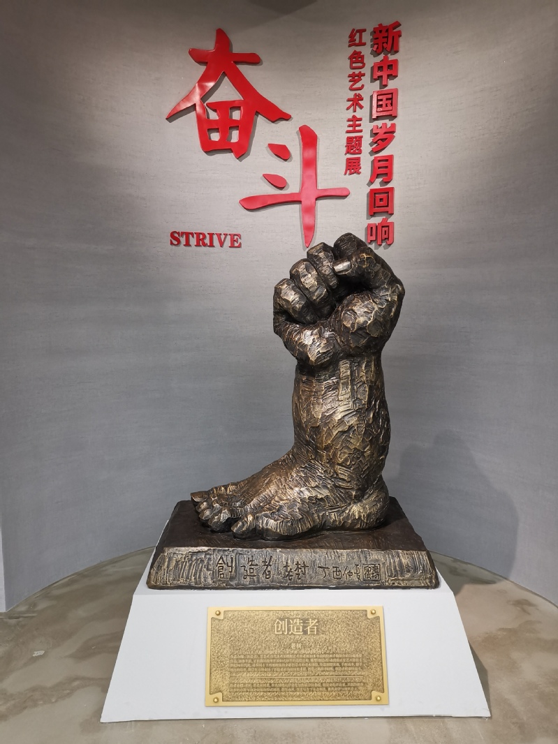 “奋斗——新中国岁月回响”红色艺术主题展共分为“奋斗之艰”、“奋斗之歌”、“奋斗之美”、“奋斗之勇”四个篇章,以百年红色经典艺术作品讴歌共产党,以宏大的美术叙事,呈现一部中国共产党带领中国人民奋发图强的视觉艺术史。