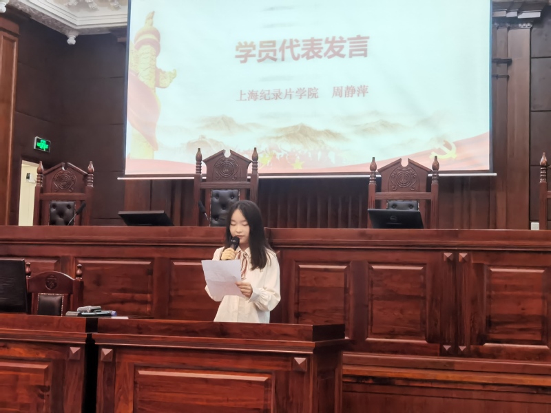 赖洁珊宣读了本期培训班优秀学员名单。来自上海纪录片学院周静萍同学作为学员代表发言。她表示通过此次培训班的学习,对习近平新时代中国特色社会主义思想有了更加深刻的理解,表示将进一步提高思想认识,增强实践锻炼,在日常学习生活中亮身份、树形象、作表率,以奋斗姿态激扬青春,勇担时代使命。