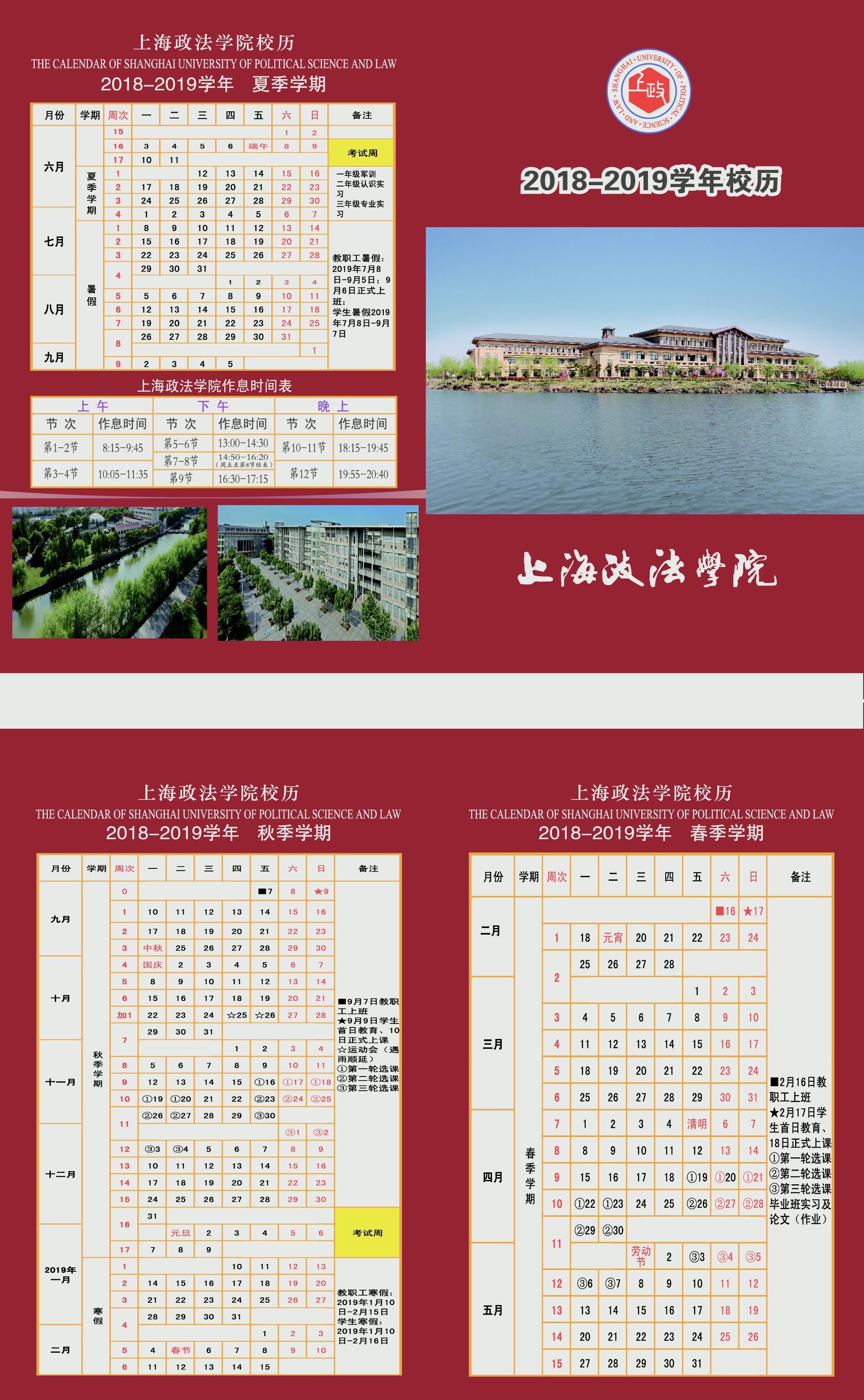 2018-2019学年校历