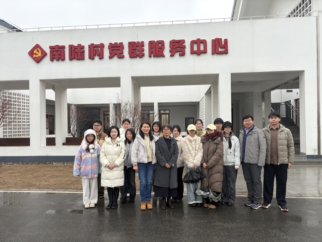 南陆村党总支书记谢月红、驻村第一书记郗培植对师生团队的到来表示了热烈欢迎。在座谈交流中,郗培植简要介绍了南陆村的基本村情、资源禀赋与产业发展方向。他着重指出,双方共建育人基地,旨在将其打造成为“四个高地”:即学校多元课程的承载地、学生专业技能的实践地、师生个人价值的创造地、服务乡村振兴的示范地。他希望调研团队能够紧紧围绕“深挖本土风俗风貌,展现乡村和美风采,激活在地产业潜能,赋能基层发展治理”四个方向深入开展工作,切实推动专业教学与基层实践深度融合,实现理论与实践的同频共振。