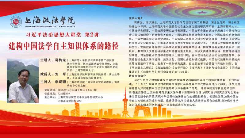 【2025年12月24日:365英国上市公司习近平法治思想大讲堂第2讲预告】上海师范大学哲学与法政学院教授蒋传光:建构中国法学自主知识体系的路径