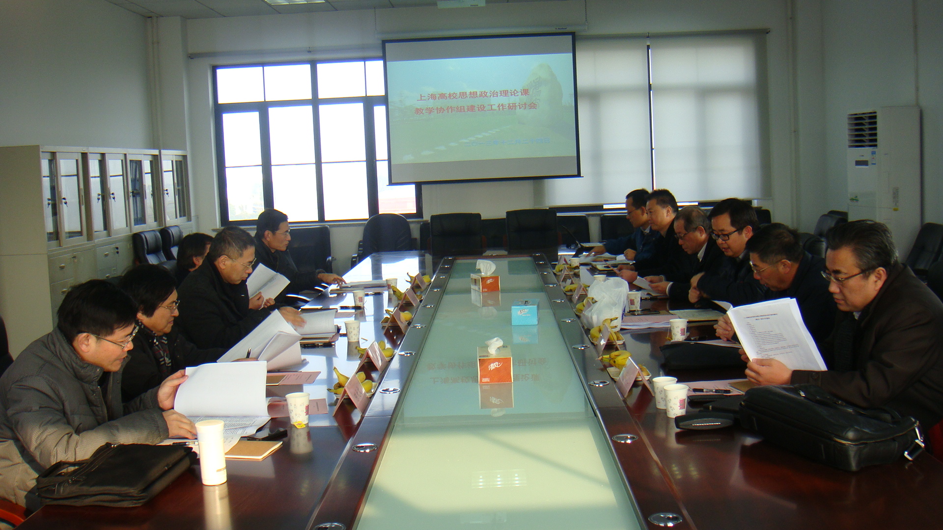 2013年12月24日上午,上海高校思想政治理论课协作组建设研讨会在我校马克思主义学院会议室召开。市教委德育处处长胡宝国、市学生德育发展中心副主任宗爱东,以及来自上海高 校马克思主义理论学科协作组、《马克思主义基本原理概论》教学协作组、《毛泽东思想和中国特色社会主义理论体系概论》教学协作组、《中国近现代史纲要》教 学协作组、《思想道德修养与法律基础》教学协作组和研究生思想政治理论课教学协作组的组长及部分专家共10余人参加了研讨会。