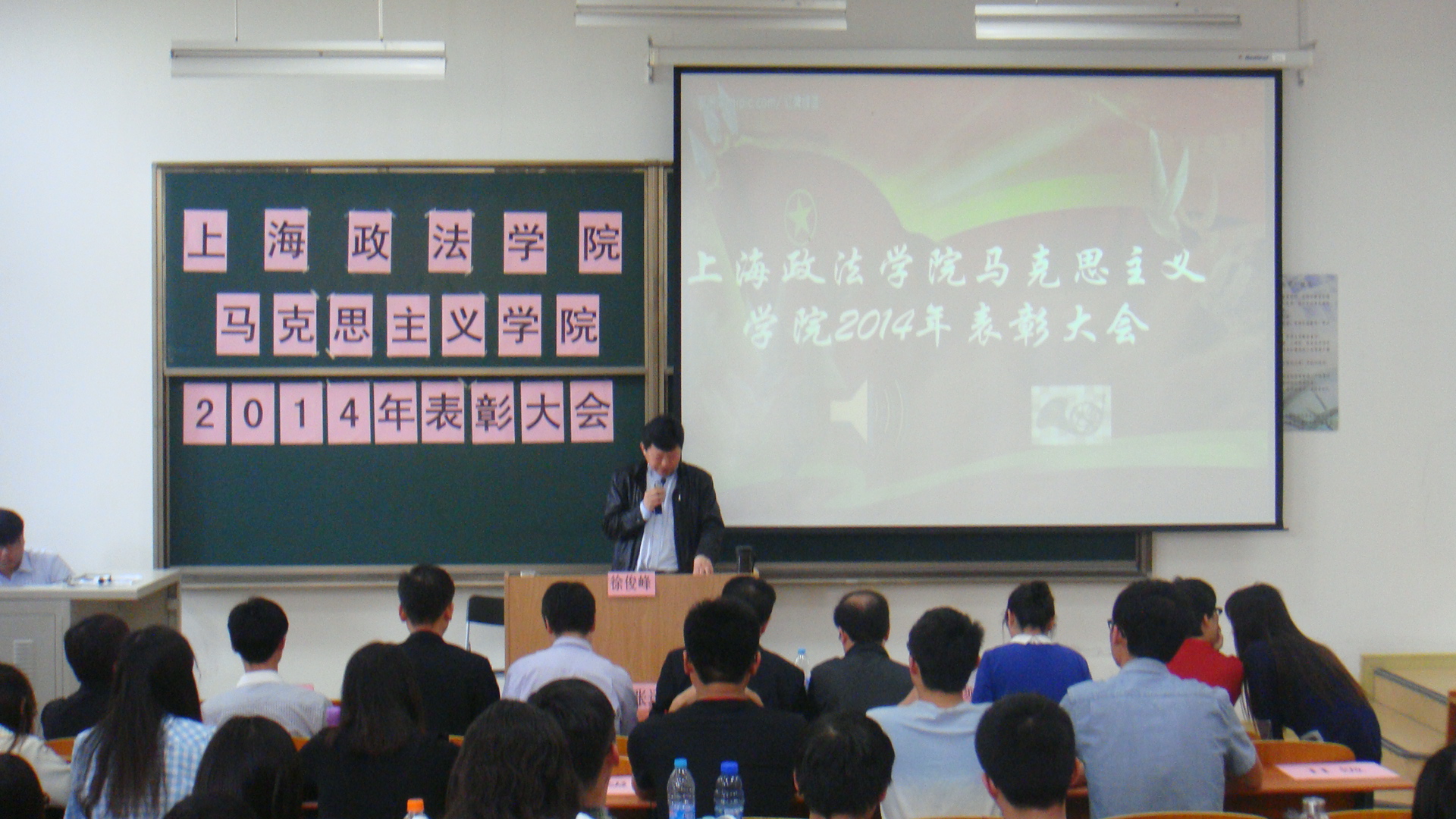5月20日下午,马克思主义学院全体师生在A8-102召开了2013-2014年学年学生表彰励志大会,会议由徐俊峰副教授主持。马克思主义学院全体师生参加。