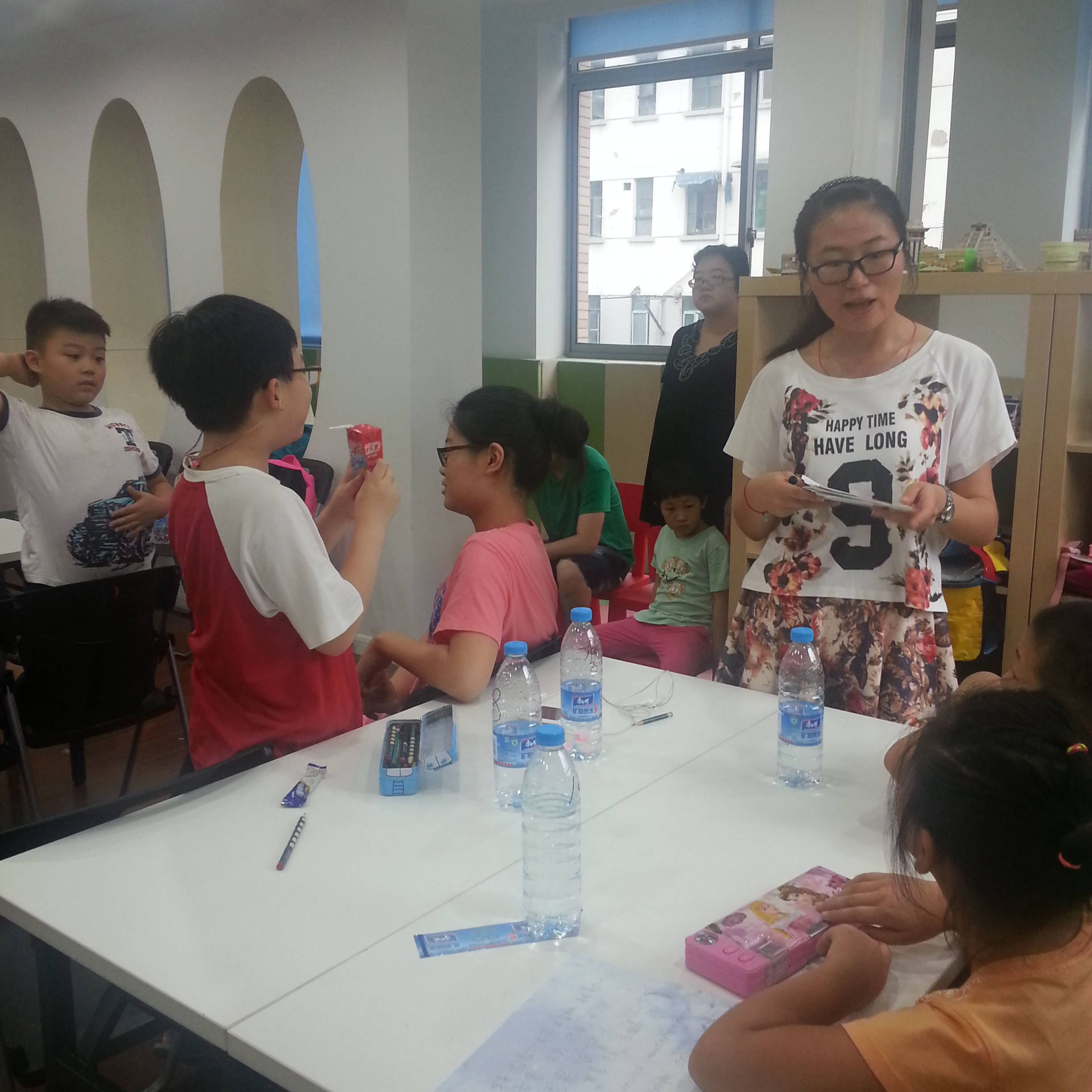 本次活动主要负责给暑托班学生的授课工作,各位志愿者结合自己的特长,给同学们安排了文明礼仪课、趣味地理课、书法课、英语课、速写课、画画课、音乐课等内容,分别从同学的文明礼仪好习惯养成、民族风俗习惯认知、艺术文化赏析、实践技能熏陶等,给同学们提供了丰富的文化大餐,带领孩子们彻底摆脱理论课本的束缚,奔向更为自由的知识领域中;并通过为同学有奖问答的快乐方式,激发培养孩子们的学习兴趣。