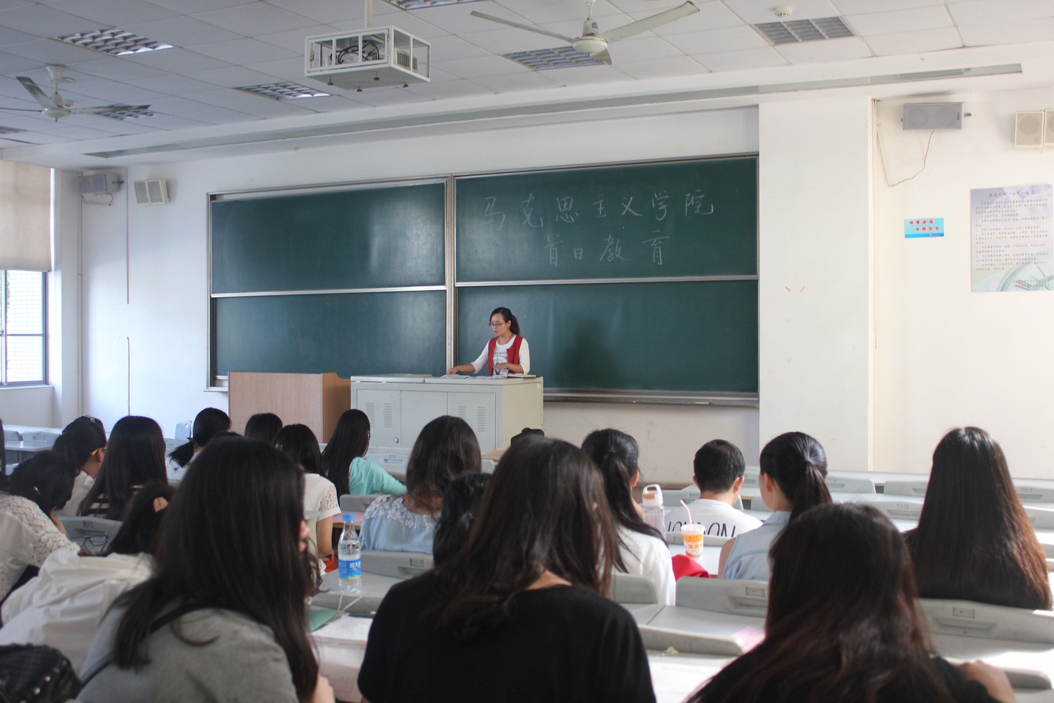 为增强学生的学习意识,从假期的闲散氛围回归校园生活,更好的开展本学期学习及其他工作,马克思主义学院于9月13日上午在庸夫楼108教室开展了秋季学期首日教育活动,全体大二、大三、大四同学参加会议,由辅导员王颖老师进行教育。