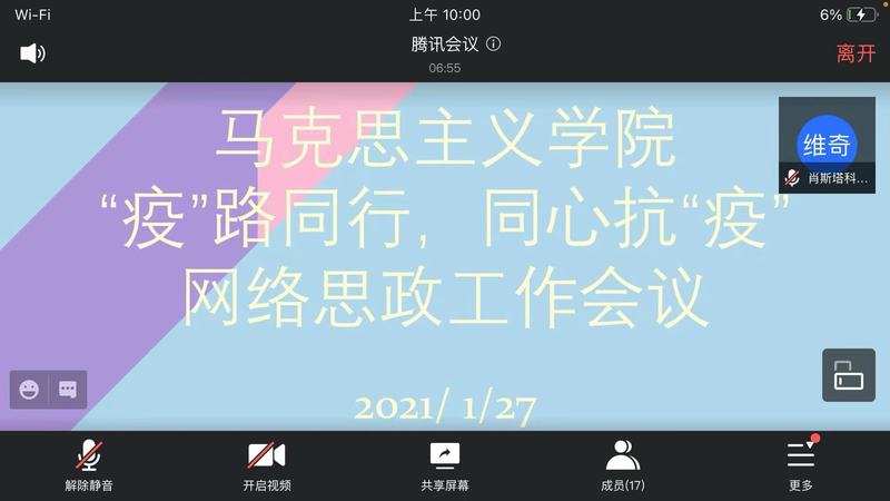 为了适应国家疫情防控新形势、新进展,贯彻落实习近平总书记关于疫情防控的重要讲话精神,更好地关注疫情风险地区同学的身心健康与疫情防控状况,做好学生寒假期间疫情防控工作,马克思主义学院于1月27日召开了“疫”路同行,同心抗“疫”网络思政工作会议。会议由19级张之辰主持,本科生辅导员段佳蓓、研究生辅导员宋欢以及来自疫情风险地区同学共同参加。