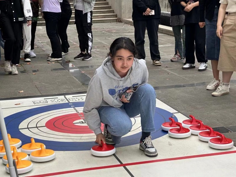 在比赛正式开始前,工作人员为选手们讲解了冰壶竞赛的规则和评分标准,并带领大家进行赛前练习。每位选手有三次机会投掷冰壶,通过赛前练习,同学们渐入佳境,逐渐能够把握力度和手感,为正式的比赛打下基础。