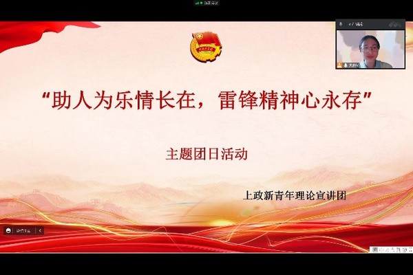 在抗击疫情期间,宣讲团在校内开展“两载战疫岁月,奏响青春颂歌”主题宣讲等,激励在校青年学生挺膺担当、共同抗疫。为宣传习近平总书记在庆祝中国共产党成立100周年纪念大会上的重要讲话精神,宣讲团去到365英国上市公司语言文化学院和国际法学院为入党申请人和入党积极分子宣传“七一”讲话精神。在二十大召开后,宣讲团推出了“二十大精神系列宣讲”,并与上政第16学生党支部、第34学生党支部、研究生学生会合作,面向党员代表和研究生传递党的最新理论。
