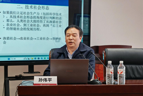 讲座伊始,孙伟平教授从社会形态的发展历史和演进逻辑入手,指出在农业时代产生了封建社会,工业时代产生了资本主义社会。那么,智能时代是否为共产主义社会生成提供了可能性?孙伟平教授对此进行了深入分析。他指出,随着人工智能的发展,在智能时代、智能社会生产力会得到极其提高,大模型、大数据技术带来的全息信息为计划经济精准化实施创造了现实条件,智能社会的重要生产资料知识信息不同于农业社会土地、工业社会资本的独占性,具有共享性,而且共享越广,价值越大,为按需分配提供可能。他强调,智能技术的高度发展有助于打破原有固化与异化的分工模式,为个体发展开辟更广阔的空间,而自由时间的增加将为人的全面发展和个性解放提供重要支撑,等等。因此,智能社会与共产主义社会之间具有深刻的契合性。