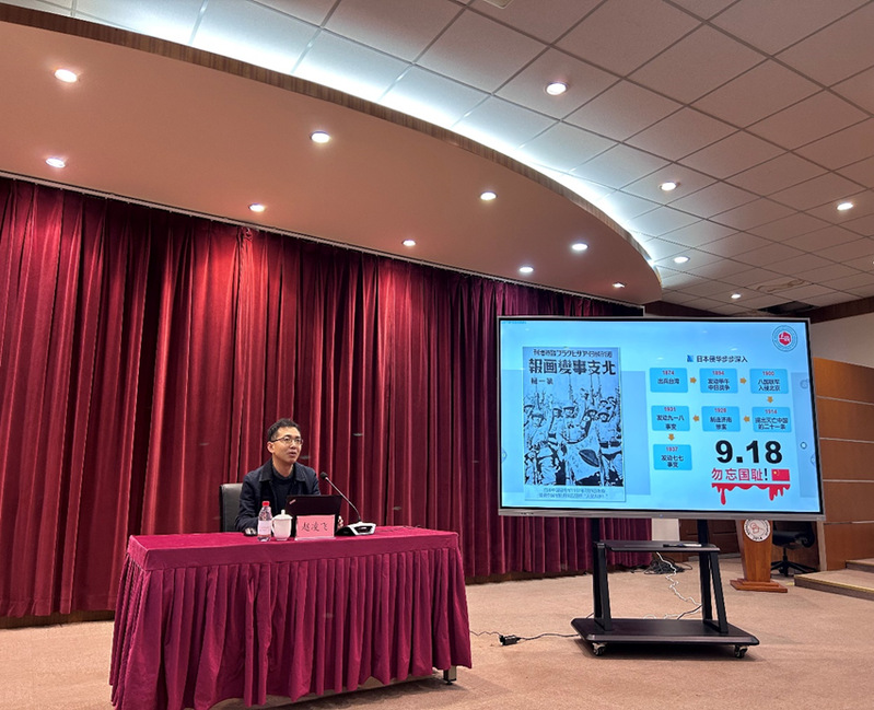为深入学习领会习近平总书记“3·18”重要讲话精神,切实把思想和行动统一到讲话精神上来。3月18日上午,我院党总支委员、教工党支部书记、中国近现代史教研室主任赵凌飞,受邀赴上海兴伟学院马克思主义学院开展以“‘铭记抗战历史,传承红色基因’——神圣的民族解放战争”为主题的思政公开课暨新学期“开学第一课”及教学共建活动。本次活动由上海兴伟学院党总支副书记、马克思主义学院院长施锦超主持,上海兴伟学院魏农建校长及全校90余名师生参加公开课。