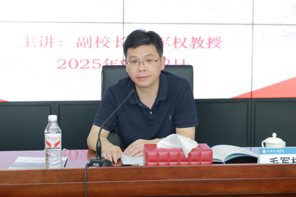 9月22日上午,我校2025年新进教师入职培训在求实楼513会议室顺利开班。校党委常委、副校长毛军权出席开班仪式,并为新进教师作“学校史明校情 担使命勇奋斗”专题讲座。开班仪式由人事处处长赵俊主持,10余名新进教师参加本次培训。