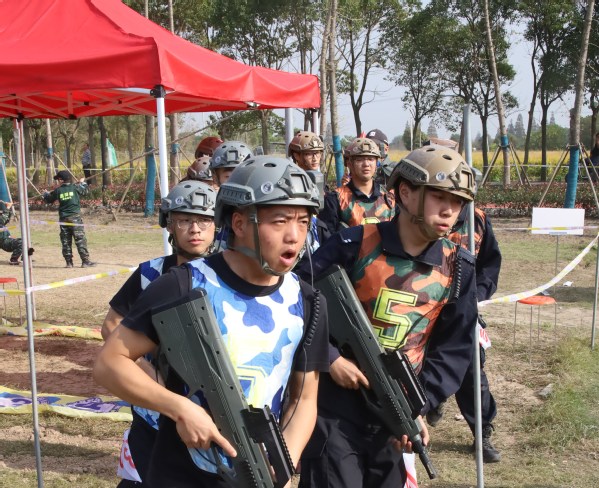 野战运动是一种集军事和游戏于一体、紧张刺激的高科技娱乐活动,使用模拟类游戏战术发射器(BB弹、水弹、彩弹、激光等各类对抗发射器械),身着战术装备以及各种款式的军装、护具,进行团队模拟军队作战训练。本届比赛设置了单人步枪射击(三姿射击)、三人障碍越野(绕杆、牵引横渡、匍匐前进、投弹和速射),考验队员的稳定性、精准度、耐力和协调能力。五人对抗项目则考验队员们的技战术水平和团队合作意识。