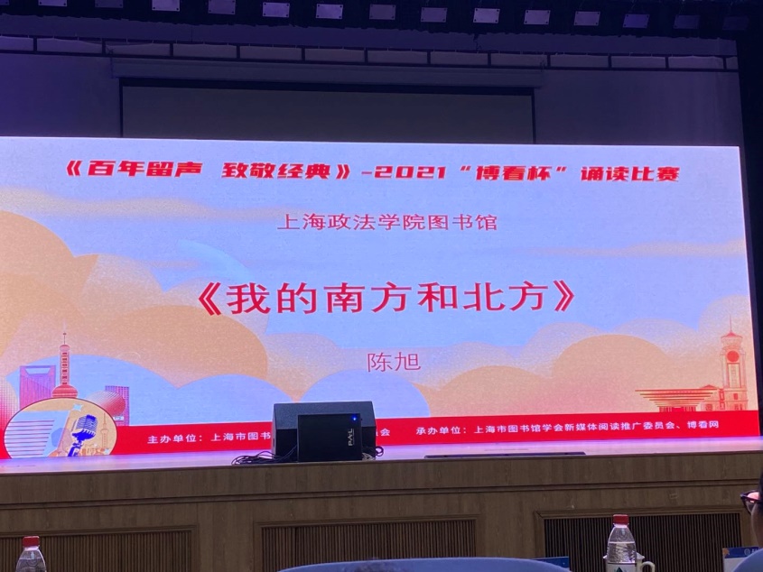 大赛自4月开赛以来,历时三个月,吸引了上海市各高校图书馆、公共图书馆等40余家参赛单位的数百名选手参加,23个作品脱颖而出挺进决赛。决赛现场百花齐放,选手作品形式多样,感人肺腑。我校法律学院陈旭朗诵的作品《我的南方和北方》最终以96.83分(第四名)的成绩获得大赛二等奖,法律学院刘校瑞朗诵的作品《美丽中国》在网络投票环节荣获“网络人气奖”。