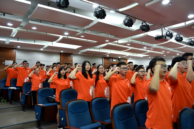 王婷对首届中国国际进口博览会的基本情况、组织体系、重大意义、工作内容作了详细介绍,强调了责任意识与保密意识志愿者代表、校学生会主席徐轶凡带领全体志愿者宣誓,展现了我校青年志愿者为进口博览会的顺利举办贡献青春力量的坚定信念与坚强决心。