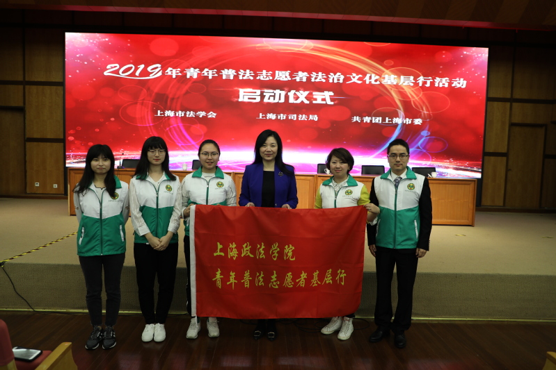 4月28日上午,由中国法学会、司法部、共青团中央共同主办的“2019年青年普法志愿者法治文化基层行活动启动仪式”在北京人民大会堂举行。按照中国法学会统一部署,上海市法学会会同市司法局、共青团上海市委在华东政法大学同步举行上海2019年青年普法志愿者法治文化基层行活动启动仪式。市法学会党组书记、会长崔亚东同志出席启动仪式,向上海青年普法志愿者代表授旗并讲话。我校青年志愿者代表及指导老师应邀与会。