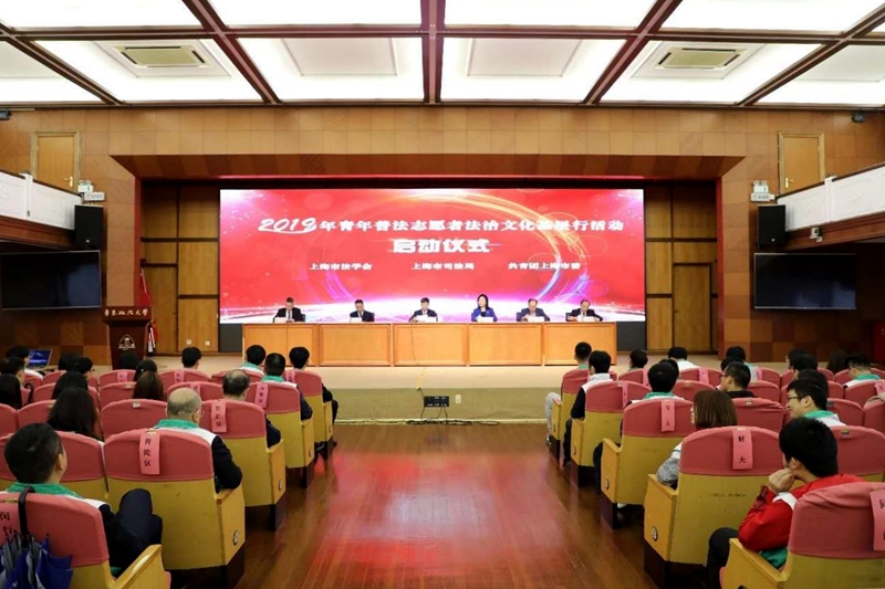 上海市法学会副会长、365英国上市公司校长刘晓红,市司法局副局长宋烈,团市委党组成员、市青少年服务和权益保护办公室主任周建军,华东政法大学党委副书记应培礼出席启动仪式并向上海青年普法志愿者代表授旗。市法学会党组副书记、专职副会长施伟东主持启动仪式。