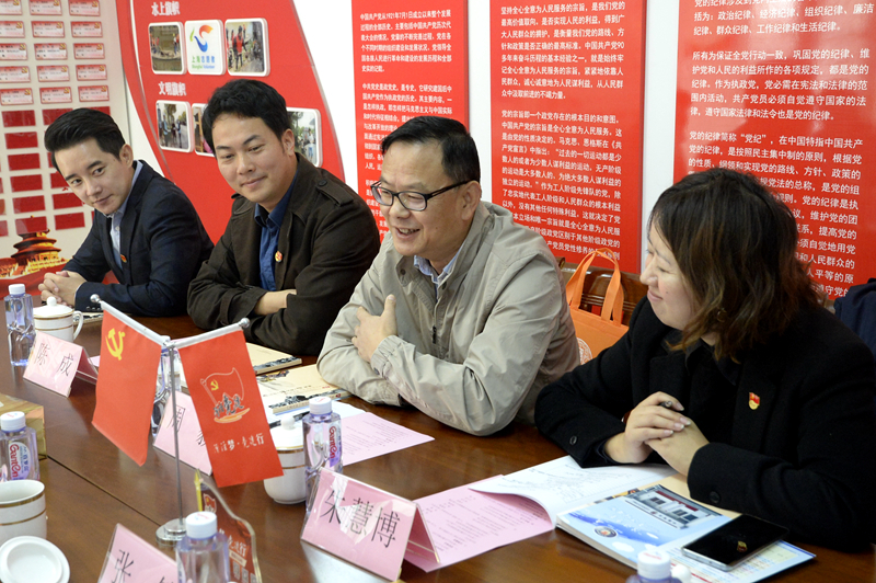 随后,双方就支部共建学习展开深入交流。漕泾镇司法所所长张筱介绍了漕泾镇的司法和法治建设情况,并希望双方在漕泾镇正在推行的“四治一体”理论指导、法治书法大赛、“法语漕堂”等方面进行深入对接合作。朱慧博介绍了我校在法治研究、人民调解、禁毒宣传和学生社团等方面的特色工作,并表示双方可以形成优势互补、无缝对接。