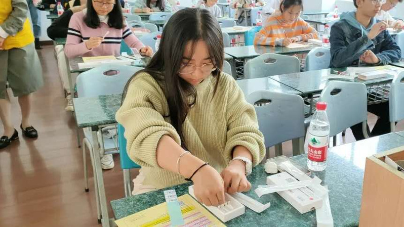 疫情期间,为降低风险、确保安全,本次活动采用新型口腔粘膜拭子样本采集方式。活动中,志愿者的自我采集分为三个流程:填写志愿表,观看学习视频,在校红十字会成员引导下自我采集。