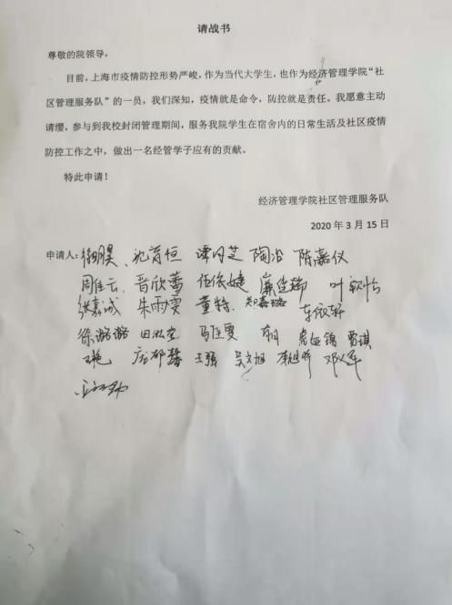 同时,此次疫情发生以来,学院多名教工党员、学生党员、普通学生主动请缨,积极报名参加疫情防控志愿服务,为上海筑牢疫情防控坚实屏障贡献自身微光。面对疫情,他们以实际行动支援学校、社区、家乡的疫情防控工作,服从组织安排,把初心使命落在行动上,校内外经管人在各自的岗位上默默奉献,共克时艰。