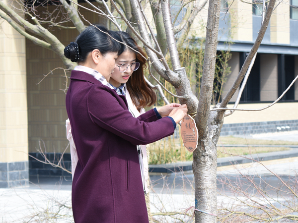 3月12日中午,由基建办和校团委共同主办的“识绿植身份·绘花园学府”的植树节行动在上合培训基地举行。基建办主任张燕、副主任潘高荣,校团委书记陆嵬以及基建办、团委全体教职工与志愿者们一起,逐一为绿植们挂上标志牌,给它们颁上“身份证”。
