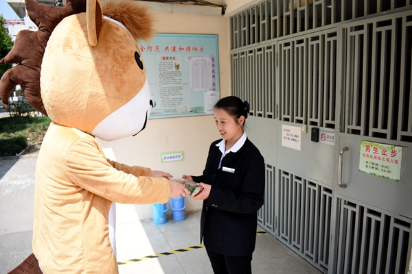 下午,吉祥物“团团”带着同学们亲手制作的青团,来到了宿舍楼、教学楼和岗亭,向坚守在岗位上默默奉献的社区管理员“楼爸楼妈”、保洁阿姨和保安大叔送去了诚挚的问候与感谢。