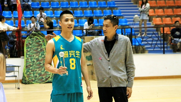 压轴上演的是男篮总决赛。比赛开始,研究生男篮队以2-3联防阵容封锁了国务学院男篮队的进攻,掌控了比赛的主动权。国务男篮的球员亦奋力拼抢,切入研究生球队内线拉回比分。研究生队稳扎稳打将领先的分差保持到了比赛结束,以83:65战胜了国务学院男篮队。