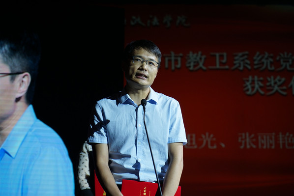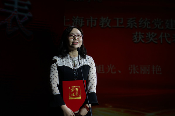 第二届上海高校青年教师竞赛获奖人周秋君宣读市教卫系统党建、工会类奖项颁奖词,获奖代表分别是马克思主义学院刘旭光(第三届上海高校青年教师教学竞赛决赛思想政治理论课三等奖)、警务学院储德峰(教卫工作党委系统“党支部建设示范点”)、马克思主义学院徐俊峰(教卫工作党委党建研究课题)、保卫处马洪亮(教卫工作党委党建研究课题)、国际事务与公共管理学院张丽艳(教卫工作党委系统“十佳主题党日”案例)、经济法学院叶卉(统战研究课题)。校党委副书记、纪委书记潘牧天与周秋君共同为获奖人颁奖。刘旭光致获奖感言,感慨教书育人给自己带了很多的成就感,课堂上学生会心的一笑都会让自己回味许久,今后将勤勉工作,牢记教书育人使命。张丽艳分享了国际事务与公共管理学院党建项目的特色,表示将继续坚持“两学一做”,做到“一个学生一面旗”,充分发挥党员先锋模范作用。