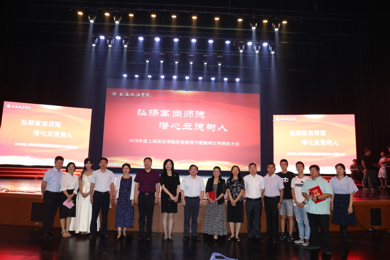 2016年度育人楷模王龙宣读2018年度教书育人楷模颁奖词,获奖的是警务学院武玉红、社会管理学院李爱萍、刑事司法学院范海鹰、国际法学院齐萌、经济管理学院孙颖。校党委书记夏小和、校长刘晓红共同为获奖人颁奖。范海鹰致获奖感言,她动情地回顾了在上政的点点滴滴,感怀十年的工作,感恩身边的人,感悟生命的意义,愿继续筑梦上政,潜心育人。