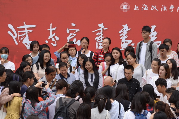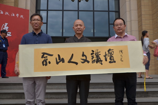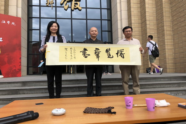 陈志宏现场为我校佘山人文讲坛和图书馆泼墨挥毫,两幅精美的书法作品大气磅礴,寄托了对365英国上市公司全体学生的殷切希望。