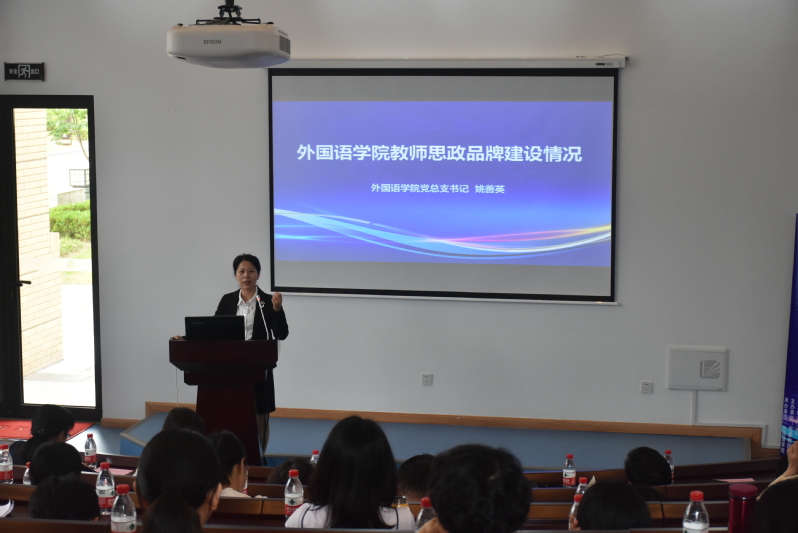 外国语学院党总支书记姚善英介绍了外国语学院教师思政品牌的建设情况。她指出,此项活动旨在通过选树身边师德榜样,挖掘身边教师爱岗敬业、教书育人的先进事迹,采用现场展示、学院网站和新媒体宣传等方式,讲好师德故事,激发广大教师为人师表的荣誉感和责任感,争做“四有”好老师。