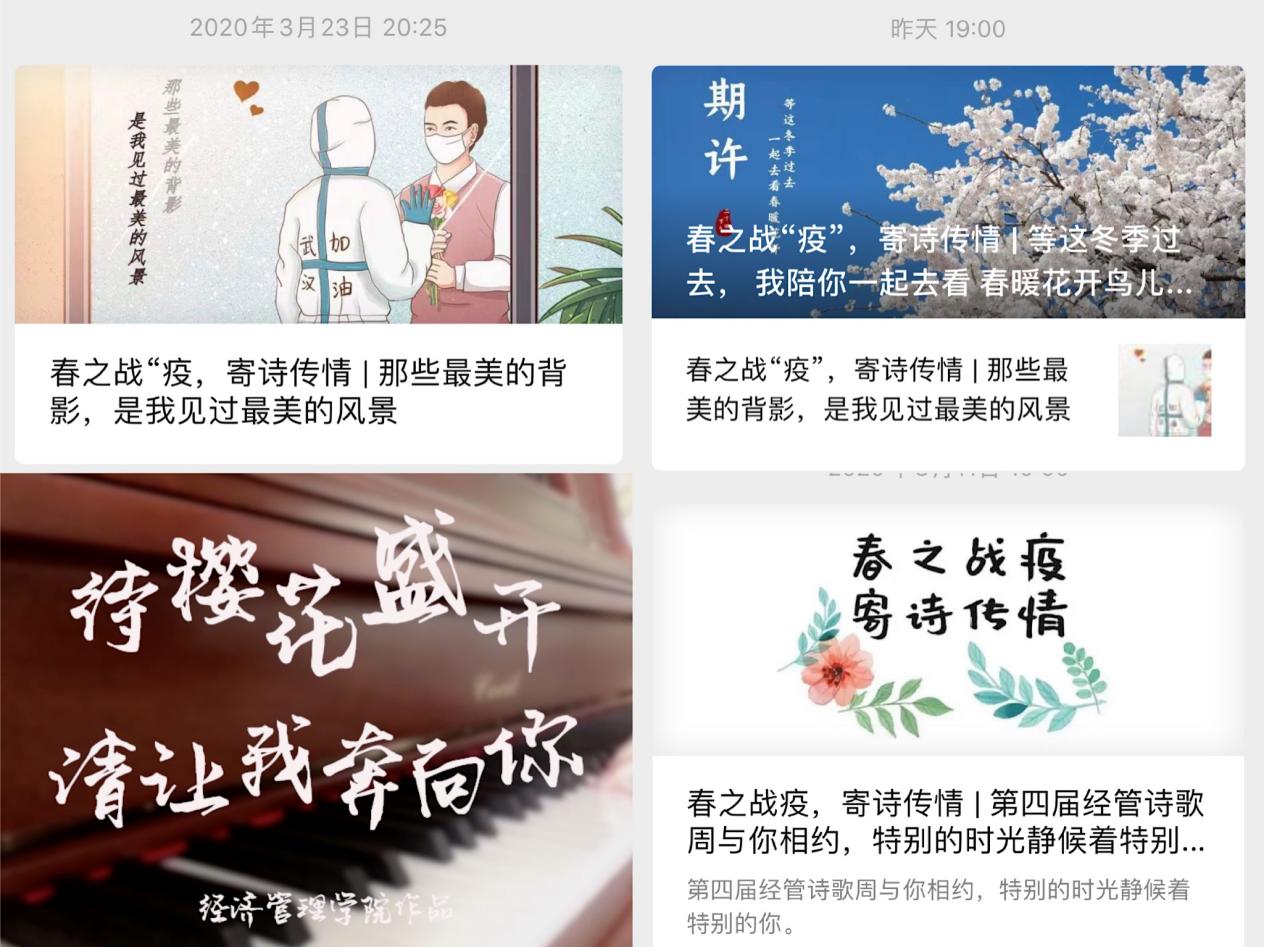 新冠疫情发生以来,经济管理学院分团委积极发挥共青团组织作用,强化宣传引导,坚定抗疫决心,开展了一系列线上主题活动,凝“青”聚力,为打赢这场疫情防控战贡献青春力量。