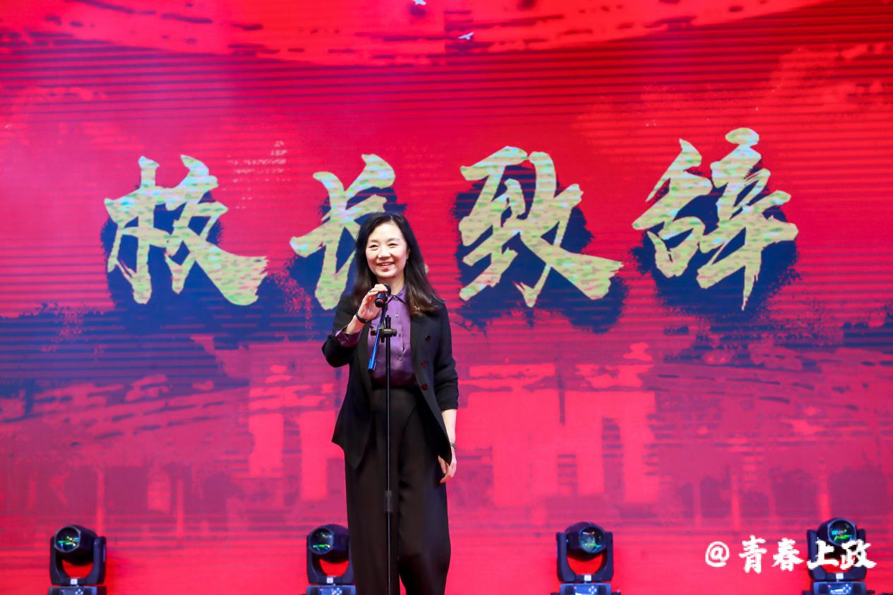 国庆节代表国的兴盛,由在役大学生士兵、西部计划志愿者和大学生村官拍摄的一组视频,唱响了“到祖国最需要的地方去”的青春之歌;4名同学讲述的抗疫故事,让现场观众感受到家与国的连接是如此紧密;28个民族的新生表演的歌舞《爱我中华》,展现了民族一家亲的和谐场景;由师生代表共同表演的朗诵《师生中国说》、合唱《我和我的祖国》,抒发了上政人报效祖国、服务人民的壮志豪情。