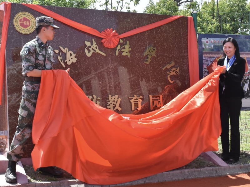 在明媚的春光里,刘晓红与军魂团的学生代表共同为国防教育园揭牌,为上政学子送上一份“节日礼物”。刘刚代表学校致辞。