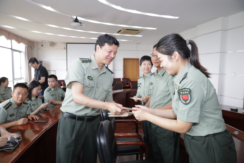 王静向全体参会人员送去节日的问候和美好祝福,感谢他们为军训工作的辛勤付出。