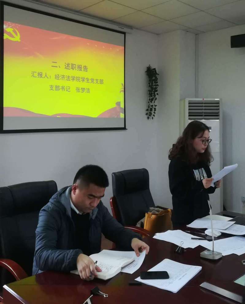 3月9日下午,经济法学院学生党支部2018年度组织生活会暨民主评议会在法学楼B1-201举行。组织生活会由学生党支部书记张梦洁主持。